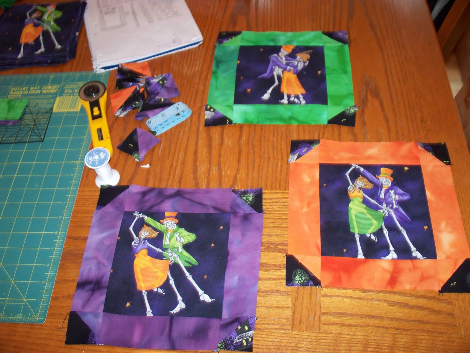 On Saturday mornings while my Dad is in Dialysis, my Mom and I get together to work on various projects, mess with plants, or just go shopping. Right now we are working on another quilt called the Moondance. We don't have an actual pattern to go by, but we do have a picture. We've started to cut out pieces and put a few squares together just to see how it's going to look. I'm pretty pleased with it, although I'm not sure if we'll get it done in time for Halloween since we are making one for each of us.